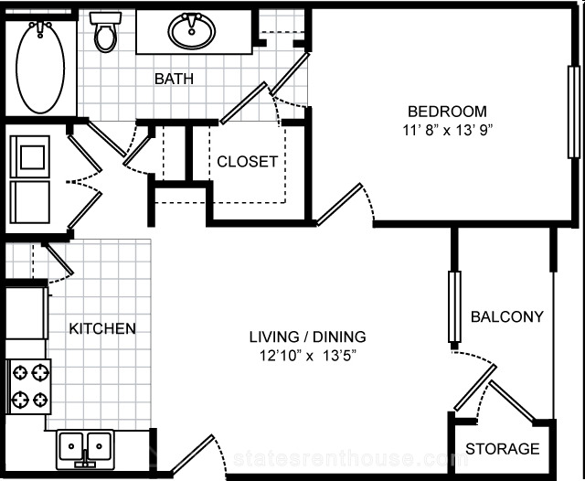 1 bed, 1 bath, 369 sqft