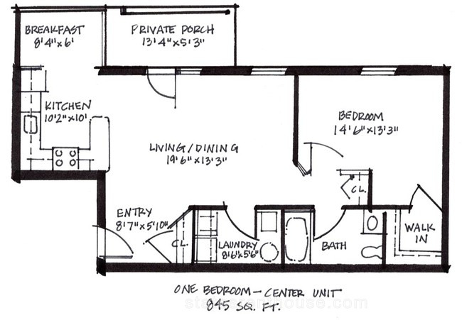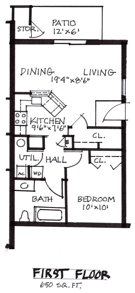 1 bed, 1 bath, 387 sqft