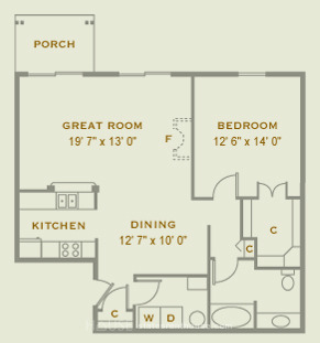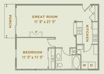 1 bed, 1 bath, 332 sqft