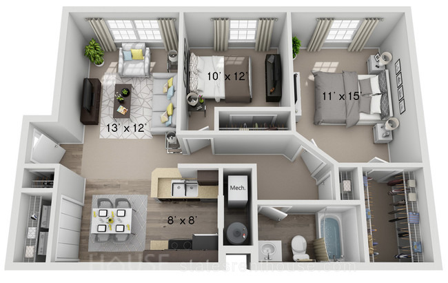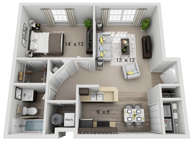 2 beds, 2 bath, 391 sqft