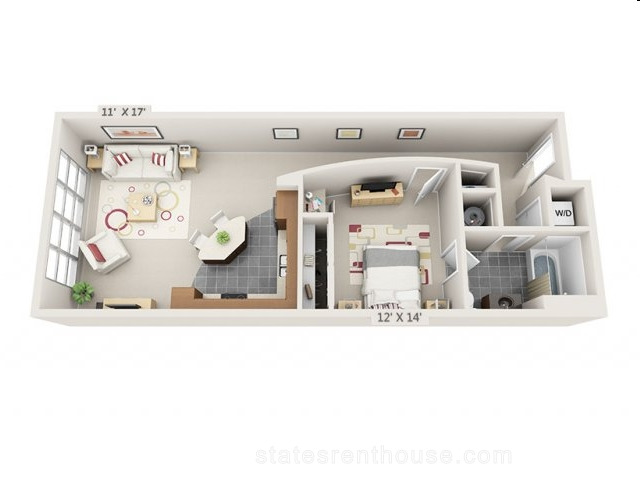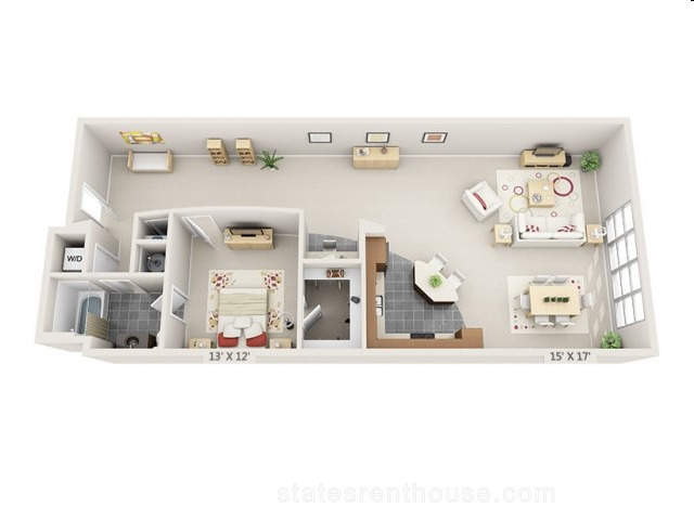 1 bed, 1 bath, 666 sqft