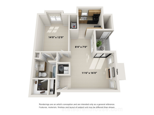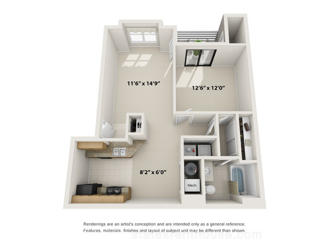 1 bed, 1 bath, 342 sqft