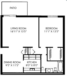 1 bed, 1 bath, 273 sqft