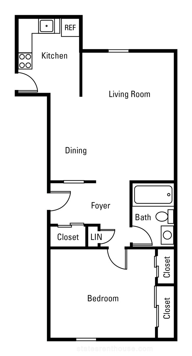 1 bed, 1 bath, 418 sqft