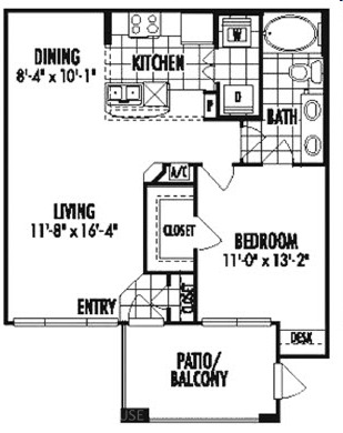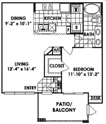 1 bed, 1 bath, 488 sqft