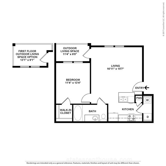 1 bed, 1 bath, 369 sqft