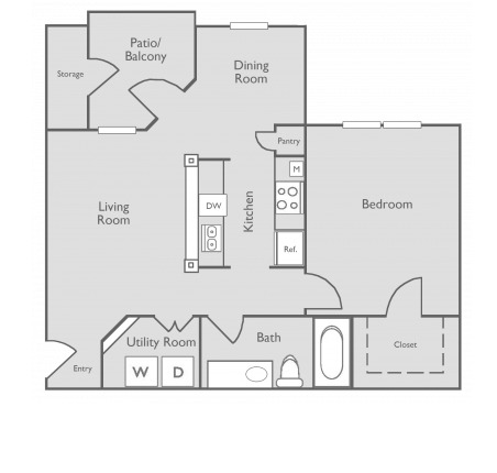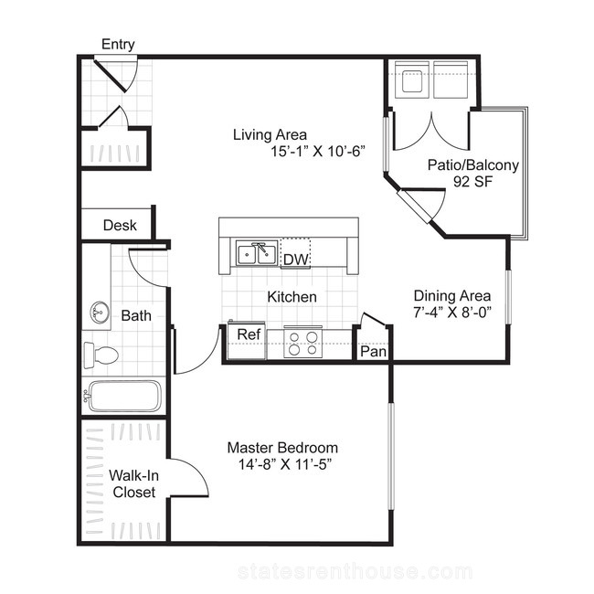 1 bed, 1 bath, 457 sqft