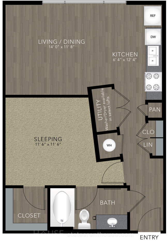 1 bed, 1 bath, 431 sqft