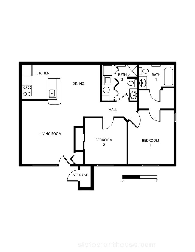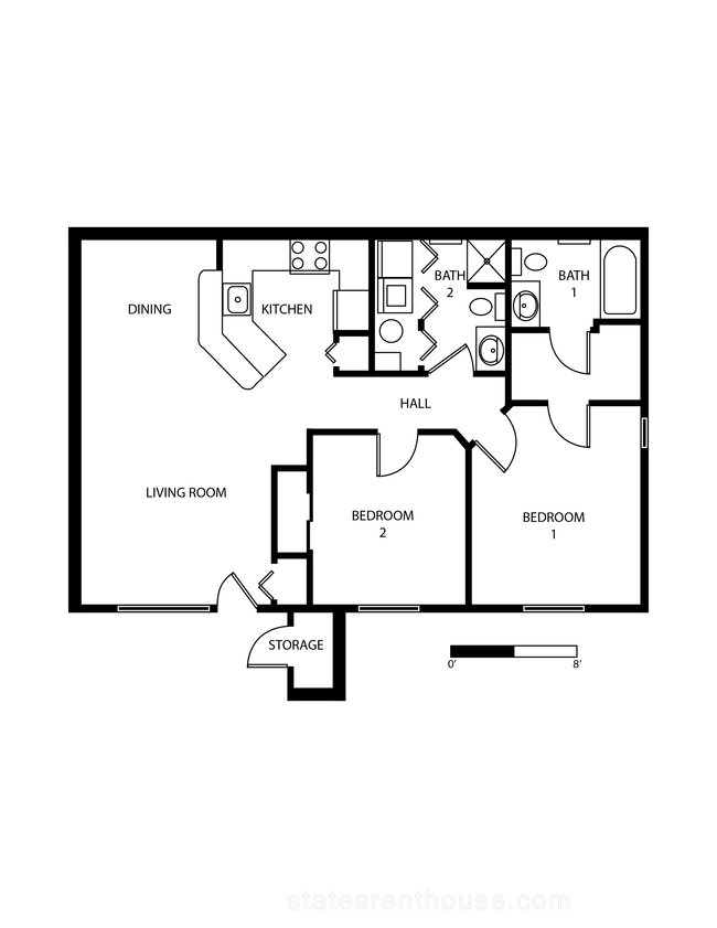 2 beds, 2 baths, 528 sqft