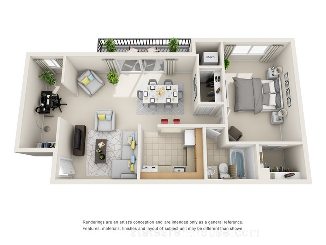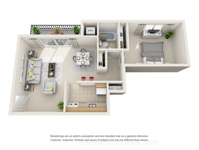 1 bed, 1 bath, 402 sqft