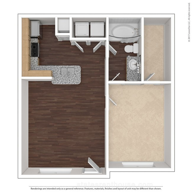 2 beds, 2 baths, 541 sqft