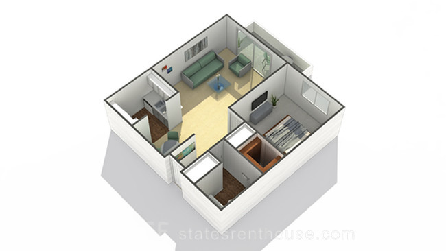 2 beds, 2 bath, 517 sqft