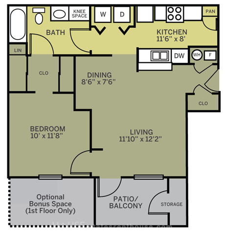 1 bed, 1 bath, 367 sqft