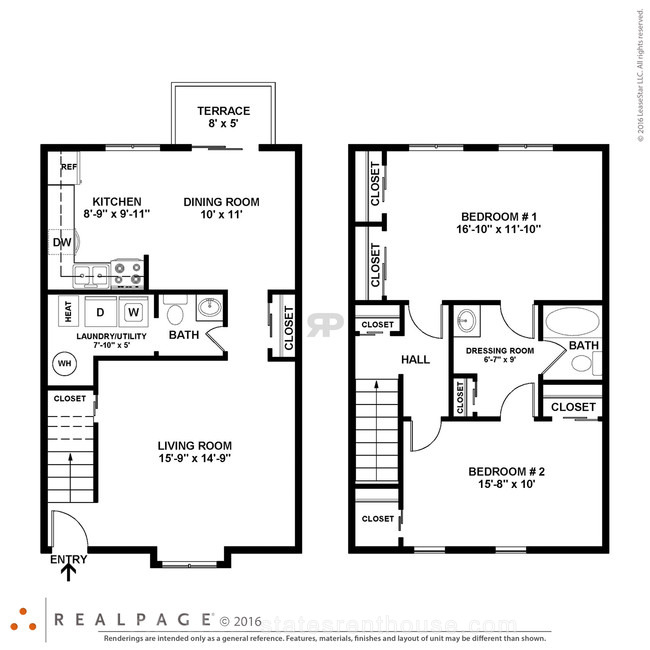 2 beds, 1.5 baths, 517 sqft