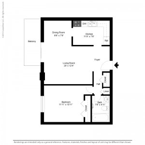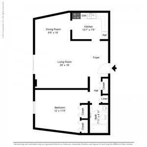 1 bed, 1 bath, 253 sqft