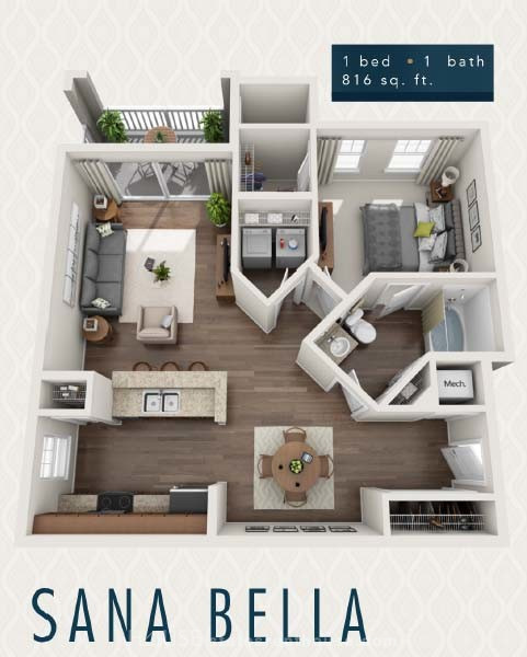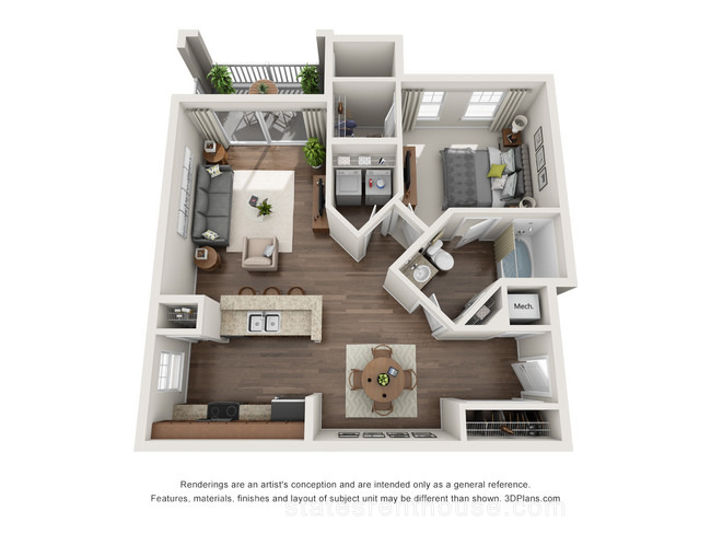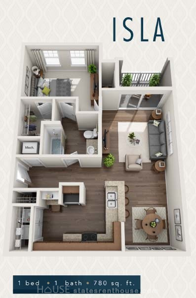 2 beds, 2 baths, 738 sqft