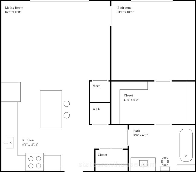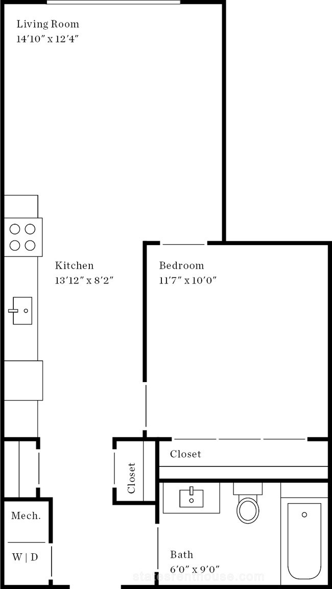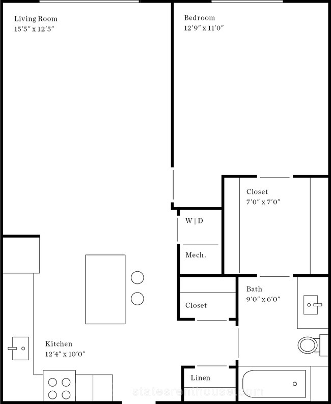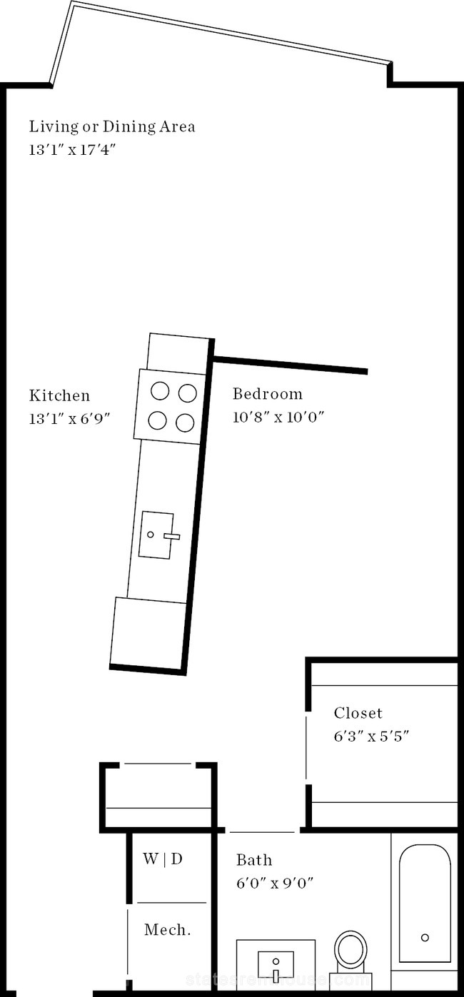 1 bed, 1 bath, 544 sqft