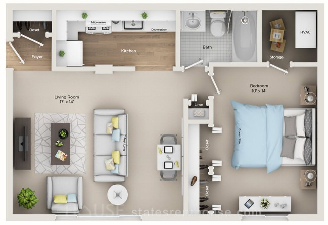 1 bed, 1 bath, 358 sqft