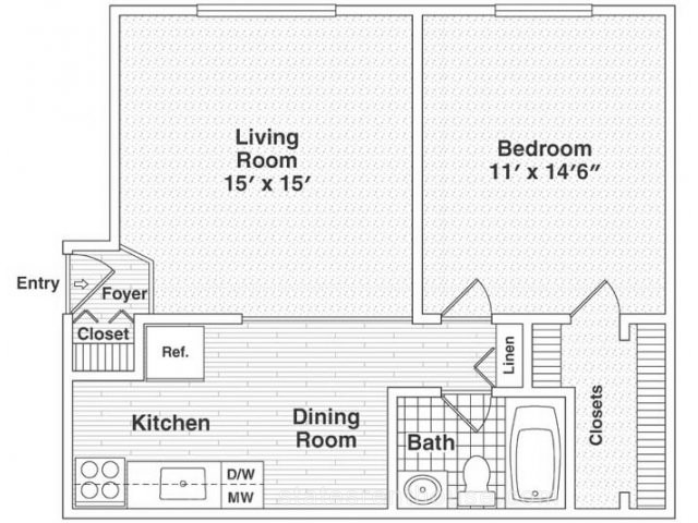 1 bed, 1 bath, 419 sqft
